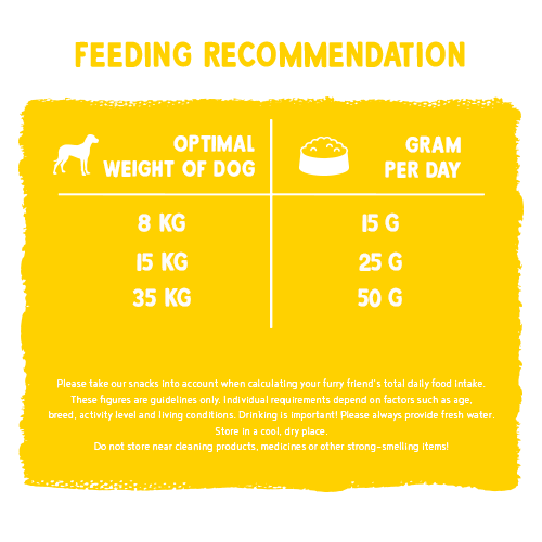 Please count snacks as part of your dog’s total daily food intake.