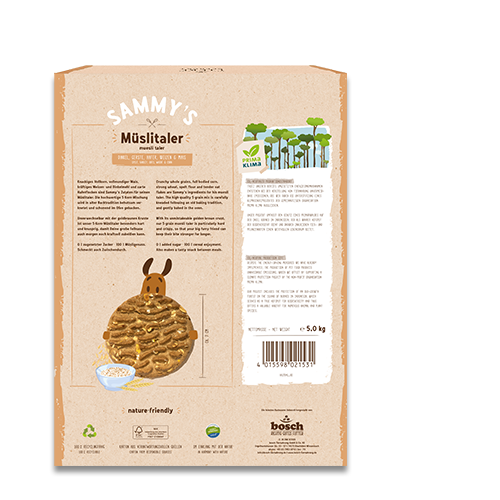 Give your dog a wholesome, crunchy snack that feels like a true bakery delight. Sammy’s Muesli Taler is crafted from a premium blend of five nutritious grains, kneaded in the traditional baking style and gently oven baked to perfection.