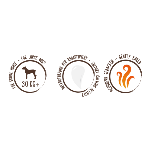 Each muesli disc features a satisfying golden brown crust and a firm, crunchy bite designed to support your dog’s natural chewing activity. This makes it an excellent reward for larger dogs or enthusiastic chewers who love a challenge.