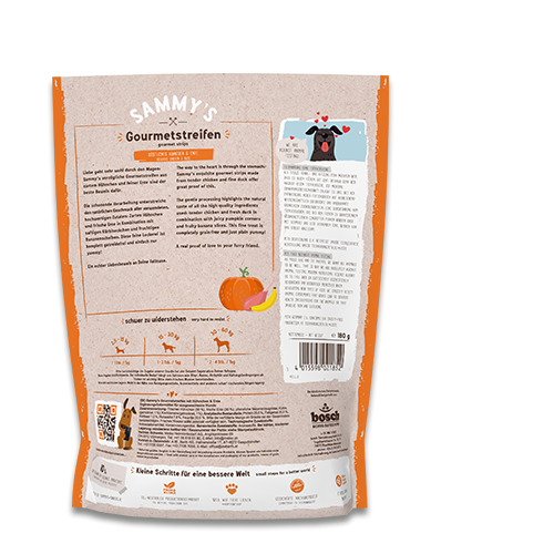 Show your dog just how much they mean to you with Sammy's Gourmet Strips Chicken and Duck, a lovingly crafted treat that brings together tender chicken, fresh duck and a touch of natural sweetness.