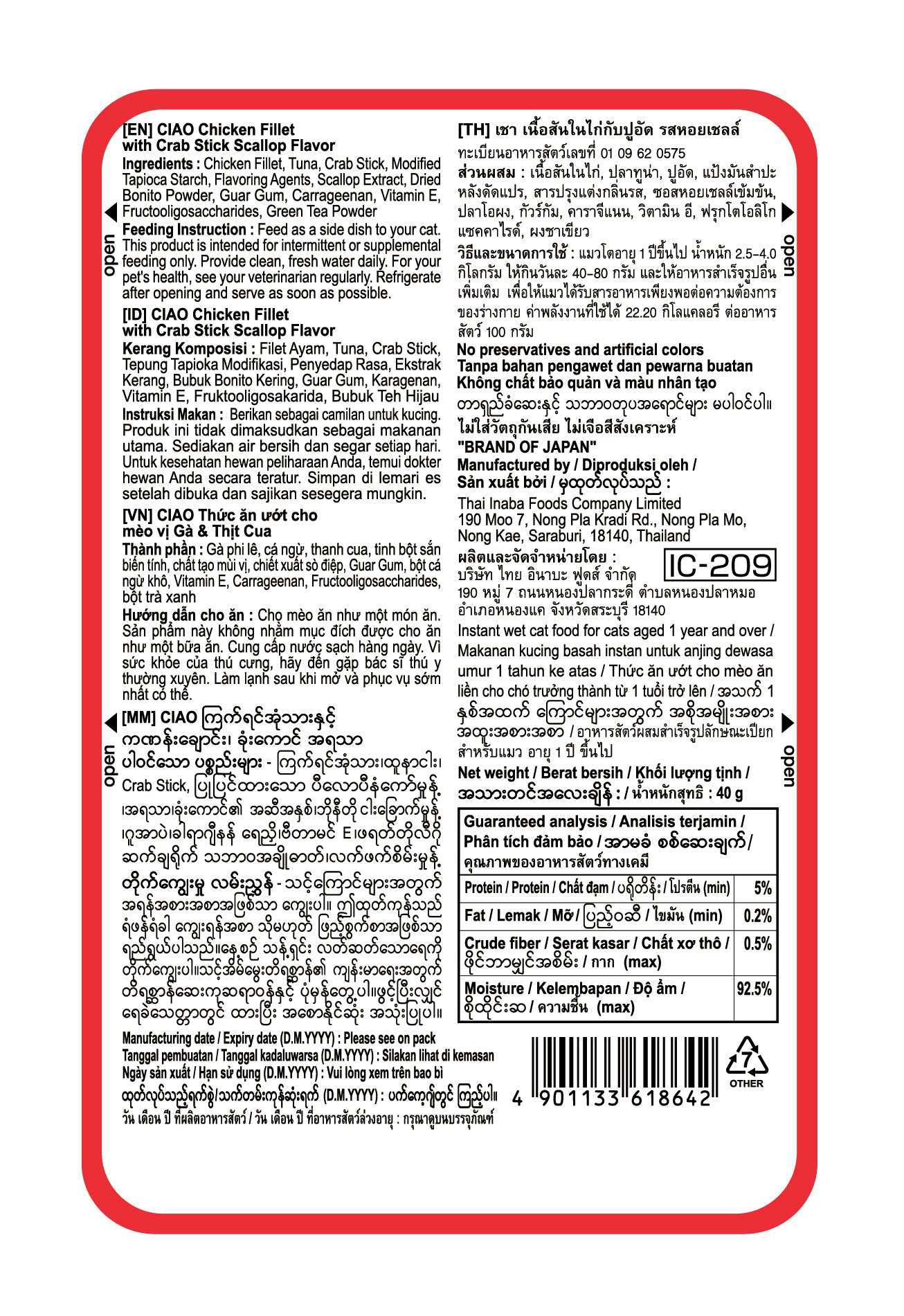 CIAO Creamy Soup Pouch Chicken Fillet & Crab Stick with Scallop Flavour Cat Food 40g x 16pouches