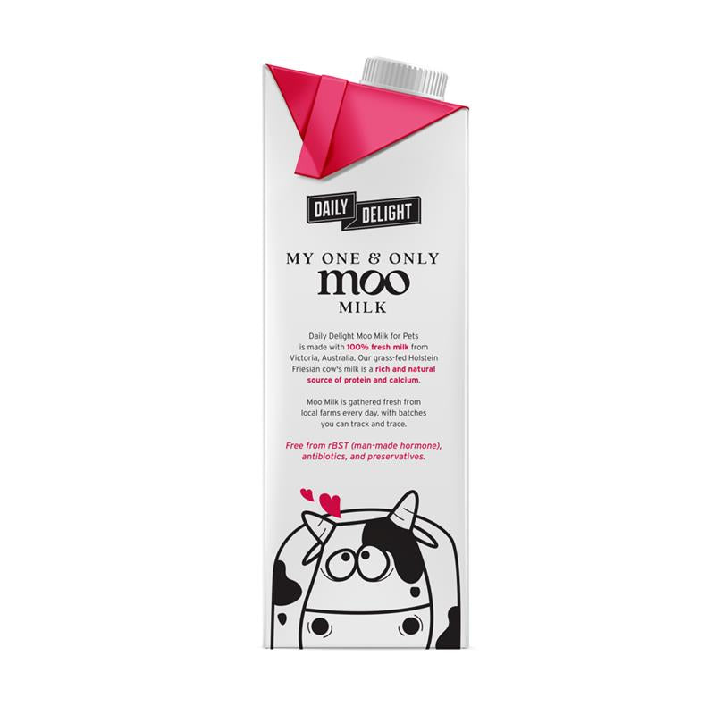 Daily Delight Moo Lactose Free Milk is a creamy, easy to digest treat made from 100% grass fed Australian milk, specially prepared for kittens, puppies, cats and dogs. It offers the goodness of fresh milk without the discomfort that lactose can cause.