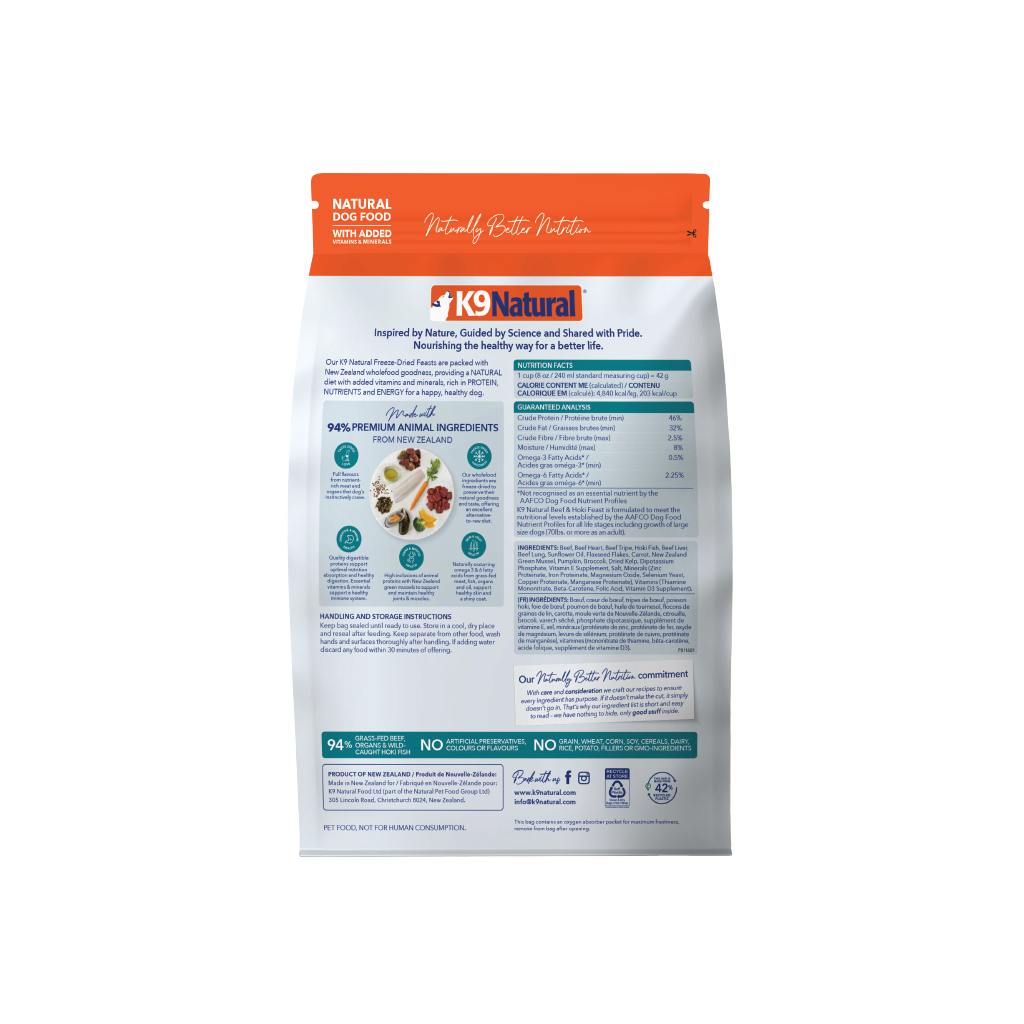 K9 Natural Freeze-Dried Beef & Hoki Feast for Dogs – 100g / 500g / 1.8kg / 3.6kg