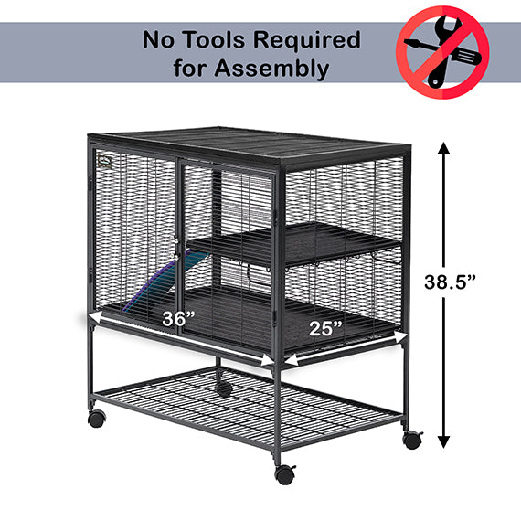 Based on the design of the popular Ferret Nation® habitat, the Critter Nation® small animal habitat features doors that open fully, critter-proof door latches, large adjustable leak-proof shelves with anchor points for toys or bedding, wire ramps with Happy Feet Ramp Covers, and sturdy, leak-proof, removable plastic pans for easy cleaning. Small animal clubs and individual owners around the world use Critter Nation® habitats to house their pet rats, chinchillas, sugar gliders, hedgehogs, degus, and more. Give your small animal a happy home with Critter Nation®, the World’s Best Small Animal Habitat.