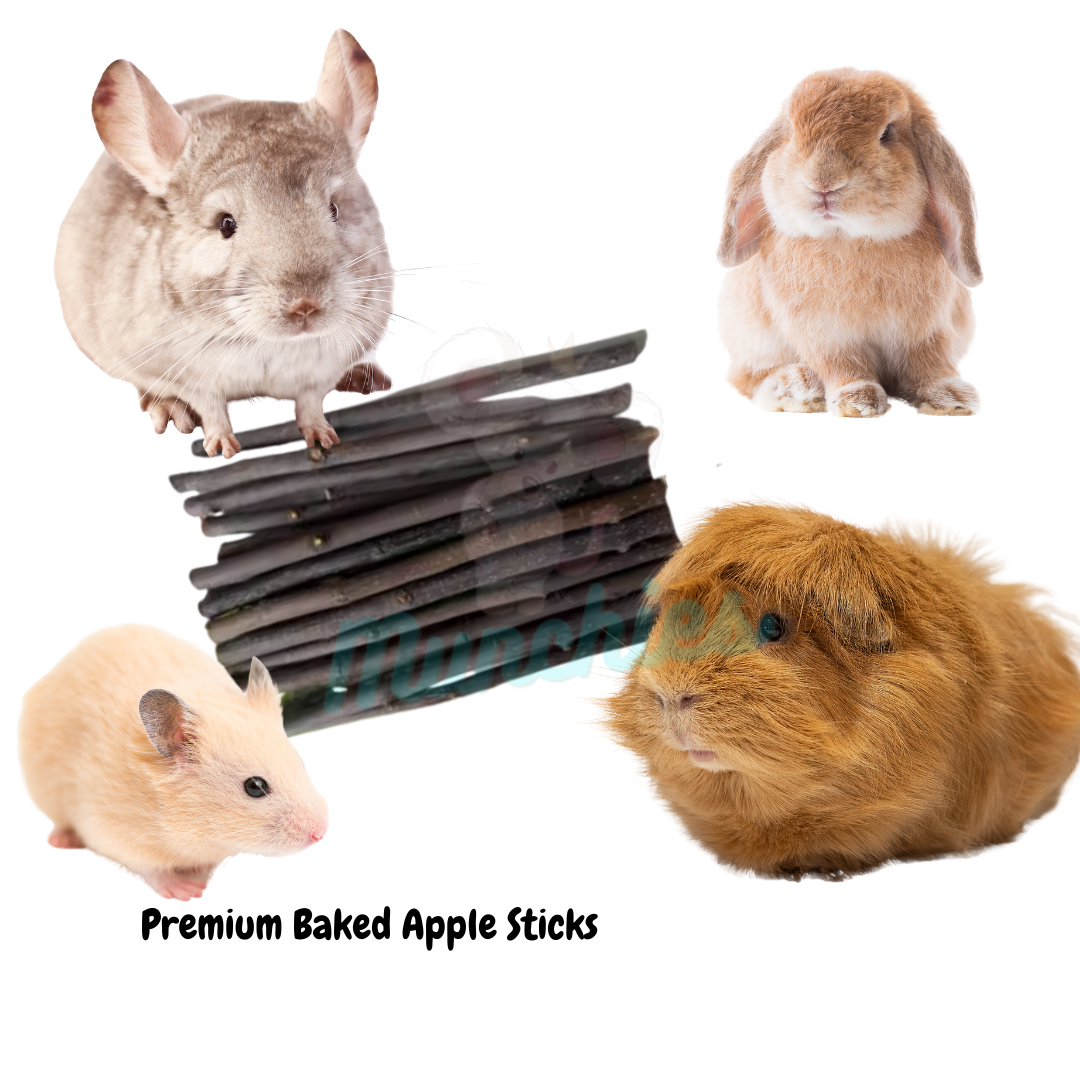 Treat your furry companions to the wholesome goodness of Munchies Premium Baked Apple Sticks. Crafted from 100% natural apple wood and gently baked to perfection, these sticks offer a delightful crunch that small pets adore. Free from additives, preservatives, and artificial flavours, they're the ideal healthy snack to keep your pets engaged and satisfied.
