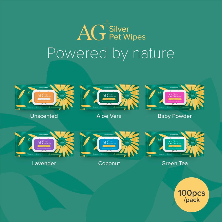 Nurture Pro AG+ Silver Pet Wipes Green Tea combine natural antimicrobial power with the refreshing, antioxidant-rich benefits of green tea 🍃. Specially designed for dogs and cats, these premium wipes cleanse gently while soothing and protecting delicate skin.